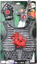 Ta otroški viteški kostum je zasnovan za domiselno igro vlog in pustne preobleke. Oklep z rdečim zmajem, stilen meč in ščitnik tvorijo uravnotežen trojček dodatkov, ki vsakemu malemu bojevniku dodajo samozavest in pristnost. Trpežna plastična izvedba in dodelani detajli podpirajo dolge ure varne igre.