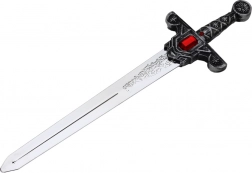 Stilen meč s srebrnim rezilom in okraščenim ročajem je odličen dodatek za varno, domišljijsko igro malih vitezov.
