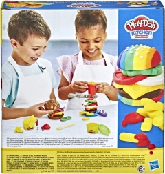 S setom Play-Doh Kuhinja Burger in Pomfri se lahko mali kulinarični umetniki potopijo v svet ustvarjalne igre. Set vključuje: