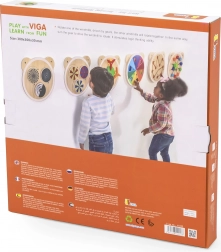 Lesena tabla v obliki medvedje glave združuje pet povezanih zobnikov in tri vetrnice. Otroci se skozi igro učijo principa vzroka in posledice: po zasuku enega kolesa se začnejo gibati vsa. Naravno tako urijo finomotoriko, vizualno zaznavanje in timsko sodelovanje, ko se izmenjujejo pri enem panelu.