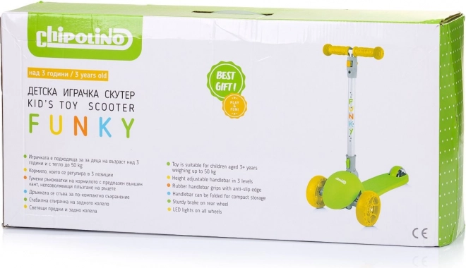 Otroški skiro CHIPOLINO Funky z osvetljenimi kolesi, zeleno‑rumen