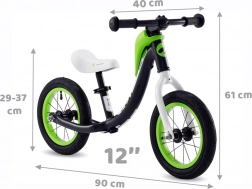 Z napihljivimi 12" kolesi se poganjalec gladko vali tudi po manj ravnih površinah. Hitra nastavitev sedeža (pribl. 31–38 cm) omogoča prilagoditev višine rasti otroka. Praktičen pašček za prenašanje boste cenili na izletih in po koncu vožnje.