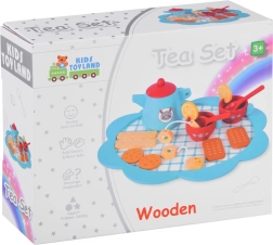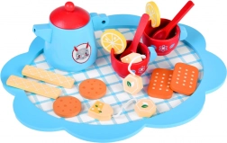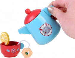 Ljubek lesen čajni set za otroke v modrih odtenkih prinaša vse za majhno čajno zabavo: pladenj, čajnik, skodelice, žličke ter piškote in limono. Izdelan je iz trpežnega lesa in prebarvan z varnimi, netoksičnimi barvami, zato je idealen za igranje vlog, razvoj domišljije in fino motoriko otrok od 3 let dalje.
