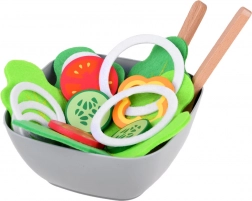 Komplet za solato otrokom prinaša pristno izkušnjo kuhanja – od trganja listov, preko mešanja do serviranja. Deli iz lesa in filca so prijetni na otip, trpežni in z realističnim videzom pomagajo učiti poimenovanja zelenjave ter osnove zdrave prehrane.