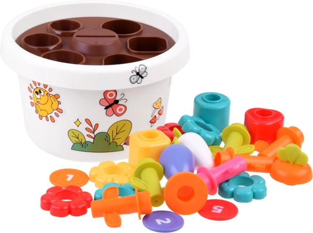 V središču osnove cvetličnega lončka je odprtina za vstavljanje žetonov, kar izboljšuje koordinacijo rok in oči. Set vključuje tudi barvite nalepke za okraševanje cvetličnega lončka, s čimer se razvija kreativnost otrok.