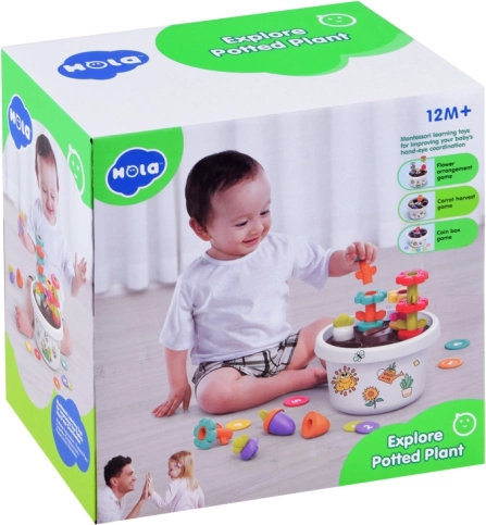 Hola Izobraževalni Cvetlični lonček 12m+ z Igrača Sorter in Piramida
