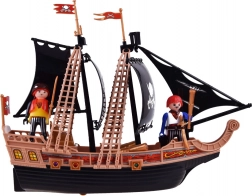 Podajte se na pustolovščino po odprtem morju s tem bogato opremljenim piratskim kompletom. Velika ladja s črnimi jadri ima skrita kolesca za preprosto premikanje in gumb, ki sproži svetlobne in zvočne učinke. Ne manjka streljajoči top s kroglicami, 4 figurice, čoln, zakladi in veliko dodatkov za kreativno igro že od 3. leta dalje.