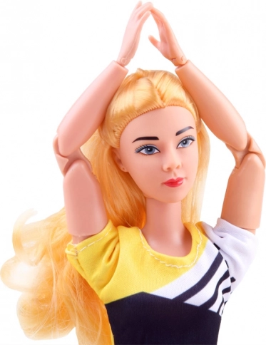 Fleksibilna punčka z dolgimi blond lasmi je oblečena v športni komplet z elastičnimi pajkicami in topom, da lahko udobno vadi. Sklepna konstrukcija omogoča realistično nastavitev rok, nog in trupa, zato zlahka posnema priljubljene asane in gimnastične položaje.