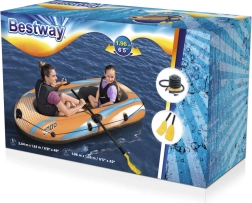 Napihljiv čoln Bestway Kondor Elite je zasnovan za udobno in varno uporabo na vodi. Zahvaljujoč dvojnim zračnim komoram nudi stabilnost in vzdržljivost. Opremljen je s udobnim napihljivim dnom in praktičnimi nosilci za vesla, ki olajšajo upravljanje na vodi.