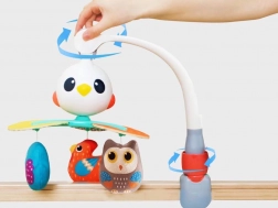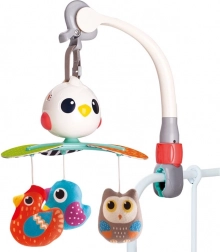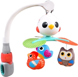 Ta čudovit otroški vrtiljak je zasnovan za spodbujanje vizualnih, slušnih in tipnih čutov vašega otroka. Preizkušene pesmi in prijetne melodije poskrbijo, da bo dojenček zadovoljen in umirjen. Vrteča se struktura je dopolnjena z visečimi igračami v obliki pisanih ptičkov, ki vabijo k prijemanju in dotikanju.