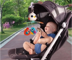 Viseče igrače v obliki ptičkov pritegnejo pozornost in motivirajo vašega malčka, da steguje roke in se igra.