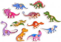Vstavljanka je idealna za prvo spoznavanje s sestavljankami – trdna lesena plošča drži vse dele skupaj, jasno določene oblike pa vodijo do uspeha. Na plošči je skupno 11 dinozavrov, med njimi priljubljeni, kot so T‑Rex, triceratops in stegozaver.