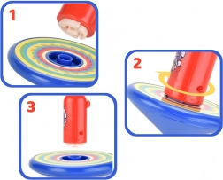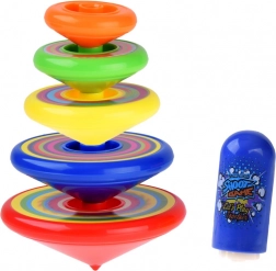 Ta barvit piramidni komplet vrtavk je zasnovan za otroke različnih starosti. S pomočjo praktičnega ročaja (launcherja) vrtavke zlahka spravite v vrtenje, kar zagotavlja gladko in privlačno gibanje na mizi ali tleh. Igrača spodbuja koordinacijo oko–roka, potrpežljivost in zbranost.