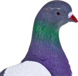 Igrača skrbno posnema videz pravega goloba, vključno z barvnim prehodom na glavi in podrobnimi elementi, kot so kremplji in perje.