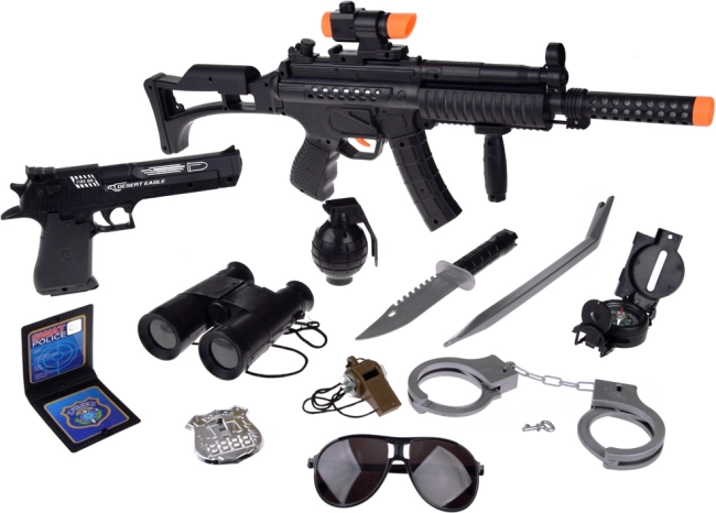 Set ponuja celotno opremo za realistično igranje policista ali vojaškega častnika.