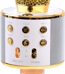 Uživajte v karaoke petju brez kablov. Mikrofon z vgrajenim zvočnikom deluje kot kompaktno ozvočenje in zahvaljujoč Bluetoothu telefon povežete v hipu. Nadzorni gumbi na ohišju mikrofona omogočajo preskakovanje skladb, ustavitev predvajanja, prilagoditev glasnosti mikrofona, glasnosti podlage in odmeva.
