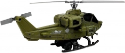 Ta vojaški komplet v umirjenih kamuflažnih barvah bo navdušil vse male ljubitelje akcijskih misij. Helikopter z 360° vrtljivimi rotorji in frikcijskim pogonom se po navijanju sam zapelje, figurica vojaka ima premične roke, čelada pa otrokom pričara občutek prave pustolovščine. Vsak element je izdelan z občutkom za podrobnosti za maksimalno realistično igro.