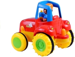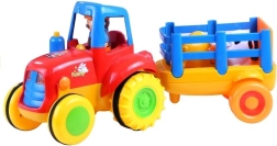 Vesel otroški traktor s prikolico in živalmi bo razveselil vsakega malega kmeta. Igrača ponuja svetlobne in zvočne učinke, pogonom naprej ter varno in odporno izdelavo. Del kompleta je prikolica z ogradico in dve figuri – kravica in konjiček. Odlično razvija fino motoriko, koordinacijo in domišljijo otrok od 18 mesecev naprej.