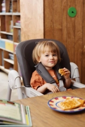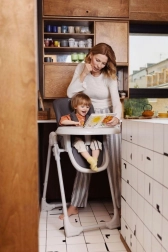 Stolček za hranjenje MoMi GOJO je opremljen s 5-točkovnimi varnostnimi pasovi, zato vaš malček sedi varno, medtem ko mu v miru pomagate razširiti jedilnik.
