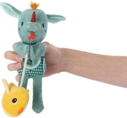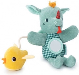 Aktivna lutka za roko malega zmaja v zeleni barvi z rdečim rogom in jezičkom je odlična za pripovedovanje pravljic, branje in umirjanje pred spanjem. Zahvaljujoč odprtinam v tačkah jo zlahka oživite in vključite otroka v igro. Vgrajeni elementi – ropotuljica v glavici, ogledalce na trebuščku in šušteča piščančka – prinašajo senzorične dražljaje in zabavo.