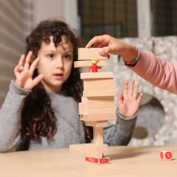 Smešni grad ponuja zabavo za otroke in odrasle. Igralci tekmujejo, kdo bo zgradil kocke višje.