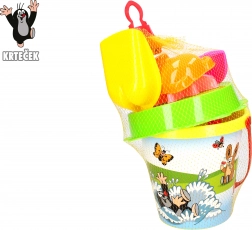 Zabaven peščeni komplet z motivom KRTEČKA bo razveselil vsakega malega graditelja. Rumen set vsebuje vedro 1,5 l, sito, lopatko, grabljice in 2 modelčka – idealno za igro v peskovniku in na plaži. Primerno za otroke od 3 let.