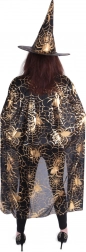 Črn plašč z zlatimi pajčevinami in pajki zasije na svetlobi ter pritegne pozornost na vsaki zabavi.