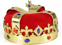 Kraljevska krona je popoln dodatek za kostum! Ta lepa krona z zlatim videzom je izdelana iz PVC-ja in okrašena z barvnimi kamenčki. Kralji se brez tega izvrstnega dodatka zagotovo ne bodo znašli!