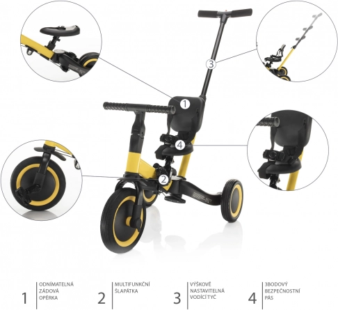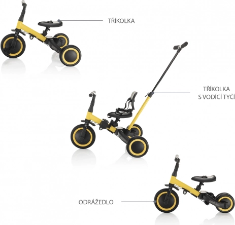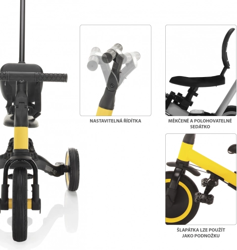 • 3 načini: tricikel (z/brez vodilne palice), poganjalec, kolo
