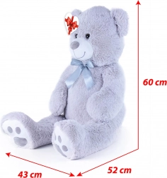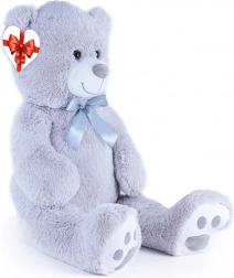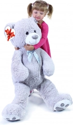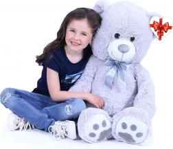 Velik siv plišasti medved dolžine približno 100 cm navduši z mehkobo, ljubkostjo in kakovostno izdelavo. Nežen, žameten otip vabi k crkljanju, satenasta pentlja doda eleganten videz, visečka v obliki srčka pa omogoča osebno sporočilo – idealno za rojstne dneve, praznike ali kot dekoracijo otroške sobe.