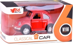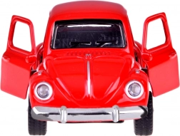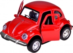 Eleganten rdeč kovinski avtomobilček v slogu klasičnega hrošča bo navdušil male voznike in zbiratelje. Ponuja odpirajoča se vrata, svetlobne učinke, zvoke in preprosto vožnjo na pull-back (poteg nazaj). Zahvaljujoč gumijastim kolesom odlično vozi, kompaktne mere pa so idealne za na pot. Dobavljeno v darilni embalaži.