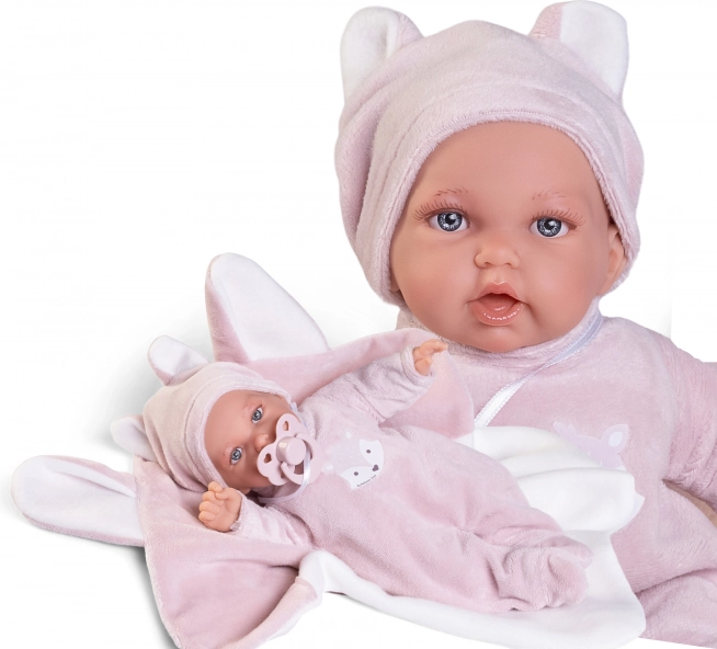 Realistična punčka z mehkim tekstilnim telesom od Antonio Juan, idealna za otroke od 2 let. Visokokakovostni materiali, kot so mehčani vinil in organski bombaž, zagotavljajo ekološko proizvodnjo.