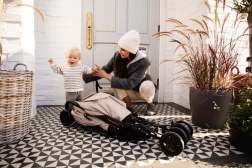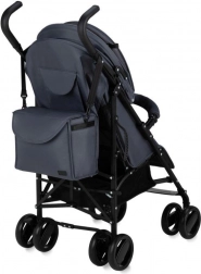 Za maksimalno udobje sta tu nastavljivo naslonjalo in nastavljiva opora za noge. Praktične podrobnosti, kot so možnost odpiranja varovala le na eni strani, odsevni elementi za boljšo vidljivost ter ročaj za prenašanje zloženega vozička, olajšajo vsakdan. Del paketa je tudi bogata oprema – torba za starše, dežna prevleka in mreža proti komarjem, zato ste pripravljeni na vsako vreme.