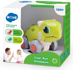 Prisrčen zeleni dinozaver na kolescih razveseli male ljubitelje prazgodovine. Zahvaljujoč sistemu push-and-go se zlahka požene, ima frikcijski pogon, premikajoča se čeljust med vožnjo in ne potrebuje nobenih baterij. Odličen za otroke od 18 mesecev naprej.
