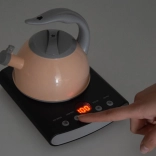 Ob pritisku na gumb se zaslon kuhalnika osvetli, kar otrokom omogoča nastavljanje temperature s pomočjo gumbov. Igro kuhanja spremljajo tudi realistični zvoki, kar celotno doživetje naredi še bolj poglobljeno. Naučite otroke osnov kuhanja in gospodinjskih opravil na najbolj zabaven način!