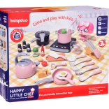 Zabavna in varna igra z kuhinjskim setom, ki spodbuja ustvarjalnost in otroke uči o kuhinjskih opravilih.