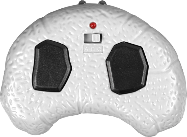 Daljinski upravljalnik z dvema gumboma: vožnja naprej/ustavitev in rotacijski manever. Enostavno za otroke od 6 let.
