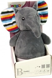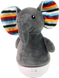 Slon ima na spodnji strani dva kontrolna gumba - enega za vklop igrače in drugega za nastavitev melodije. Melodije so zasnovane tako, da so mirne in pomirjujoče. Zaščitno oblogo v obliki slona lahko enostavno snamete in operete, kar zagotavlja higiensko uporabo izdelka.