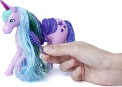 Dolga, večbarvna griva enoroga Star se zlahka češe s priloženim glavnikom in vsak dan oblikuje v nove pričeske.
