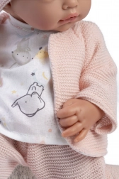 Ta realistična dojenčkova punčka je idealno darilo za otroke od treh let naprej. Z mehkim tekstilnim telesom in okončinami pritrjenimi s sklepom ponuja širok razpon gibov, kar jo naredi popolno za razvoj domišljije in igro vlog. Ročno izdelano v Španiji, zagotavlja visoko kakovost izdelave.