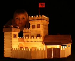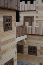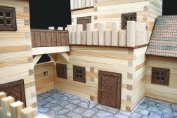 Leseni kvadratni letvi 9×9 mm in papirnati dodatki (okna, vrata, strehe) zagotavljajo verodostojen videz srednjeveške arhitekture.