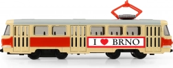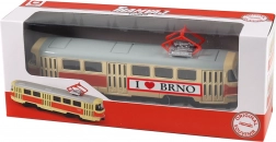 Slogovski zbirateljski tramvaj v merilu 1:87 bo razveselil ljubitelje mestnega prometa in male navdušence. Kovinska izvedba, pristne barve in napis I ♥ BRNO dopolnjuje vzvratni pogon ter dolžina 16 cm za odlično razstavljanje in igro.