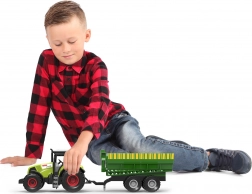 Ta realistični traktor s prikolico je idealen za otroške igre na kmetijo. Zahvaljujoč vztrajniku se zlahka zažene, gumbi aktivirajo realistične zvoke in svetlobne učinke, ki dodajo na pristnosti. Prikolico je mogoče preprosto odklopiti in traktor uporabljati samostojno.
