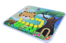 Odkrijte igriv komplet, ki spodbuja ustvarjalnost in potrpežljivost. Otroci razporejajo barvne gumbe v podlago po predlogah z živalmi ali po lastni domišljiji. Zahvaljujoč dvema velikostma gumbov je sestavljanje zabavno in raznoliko.