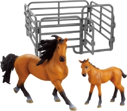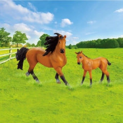 Uživajte v popolnih trenutkih z kompletom konja in žrebička v rjavi barvi s temno grivo. Ta komplet vključuje ogrado, ki je idealna za vse ljubitelje konj in je del priljubljene kolekcije Moja mala kmetija.