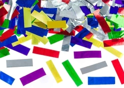 Kovinske konfeti za zabavo 40 cm so idealni dodatek za vaša praznovanja. Barvni pravokotniki iz kovine ustvarjajo osupljiv vizualni učinek, njihova uporaba pa je enostavna zahvaljujoč mehanskemu vrtenju cevi.