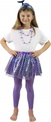 Kostum dopolnjuje trendovski naglavni trak z ribjim motivom in je idealen za plesne nastope, karnevale ali vsakodnevno igro morskih deklic. Dolžina krilca je približno 28 cm, kar zagotavlja udobje in enostavno uporabo.