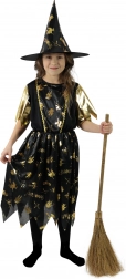 Privoščite mali čarovnici opravo, ki izstopa na vsaki zabavi. Črna obleka z zlatimi halloweenskimi vzorci, rokavi z kovinskim leskom in učinkovito nazobčan rob poskrbijo za magičen videz brez kompromisov pri udobju.