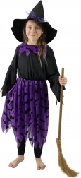 Vpadljiva črno‑vijolična izvedba in dekor netopirjev kostumu dodata pristno čarovniško vzdušje, ki očara na prvi pogled.