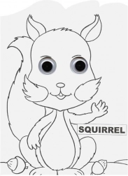 Prisrčna veverica z velikimi očmi otroke takoj pritegne in jih motivira, da sliko skrbno pobarvajo in dodelajo.